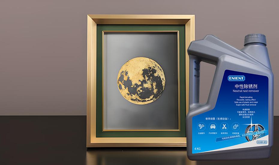 為了應(yīng)對黃銅畫框銹蝕的難題,ENIENT推出了全新研發(fā)的EC0135水基安全可噴涂除銹劑。它專為黃銅等易氧化金屬打造,集安全性、環(huán)保性和高效性于一體,能夠快速去除黃銅表面的銹蝕和污漬,恢復(fù)其原有的光澤。相比傳統(tǒng)化學(xué)除銹劑,這款除銹劑具有獨(dú)特的水基配方,不含腐蝕性物質(zhì),使用更加安全,特別適合用于家居環(huán)境。