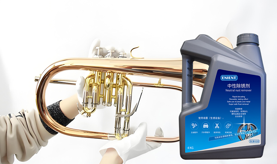 ENIENT®EC0135中性除銹劑橫空出世,為樂器愛好者們帶來了一種全新的、簡(jiǎn)便的解決方案。作為一種專為黃銅和其他銅制品設(shè)計(jì)的除銹劑,這款中性除銹劑有著無與倫比的便捷性。它是一種中性配方,既能高效除去銹跡,又不損傷黃銅表面。這一點(diǎn)尤為重要,因?yàn)樵S多化學(xué)除銹劑雖然可以清除銹斑,但它們的強(qiáng)烈酸性或堿性可能會(huì)腐蝕黃銅樂器的表面,甚至影響其結(jié)構(gòu)穩(wěn)定性,得不償失。